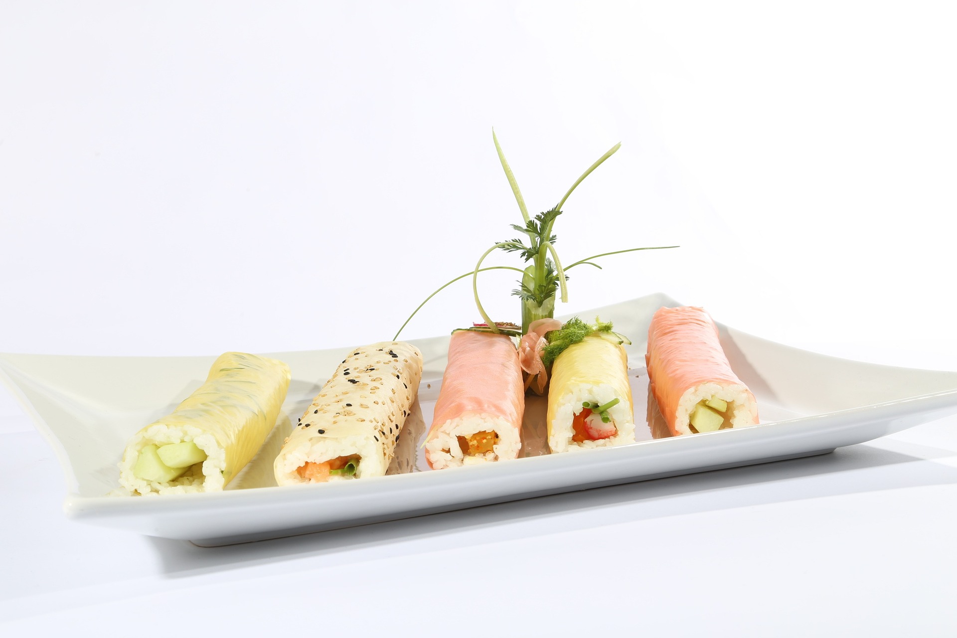 מארז זוגי רול סושי טוקיו עם אורז, חומץ אורז, פולי סויה משומרים, טופו, חביתה, אבוקדו, ביצי דגים וטונה, סלרי, עשבי תיבול, כרפס, עלי מנגולד.